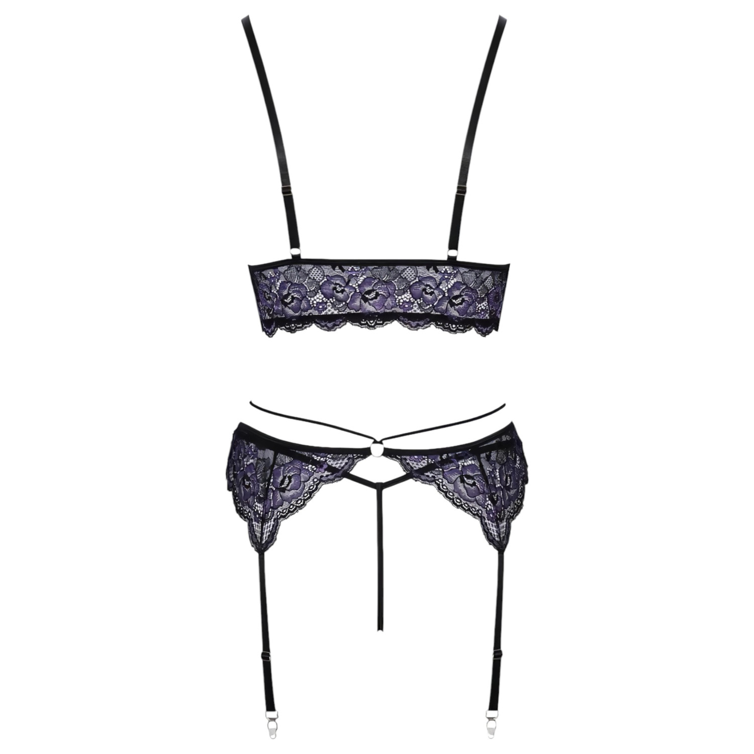 Cottelli - 3-delad spetsunderklädesset (svart-lila) - XL