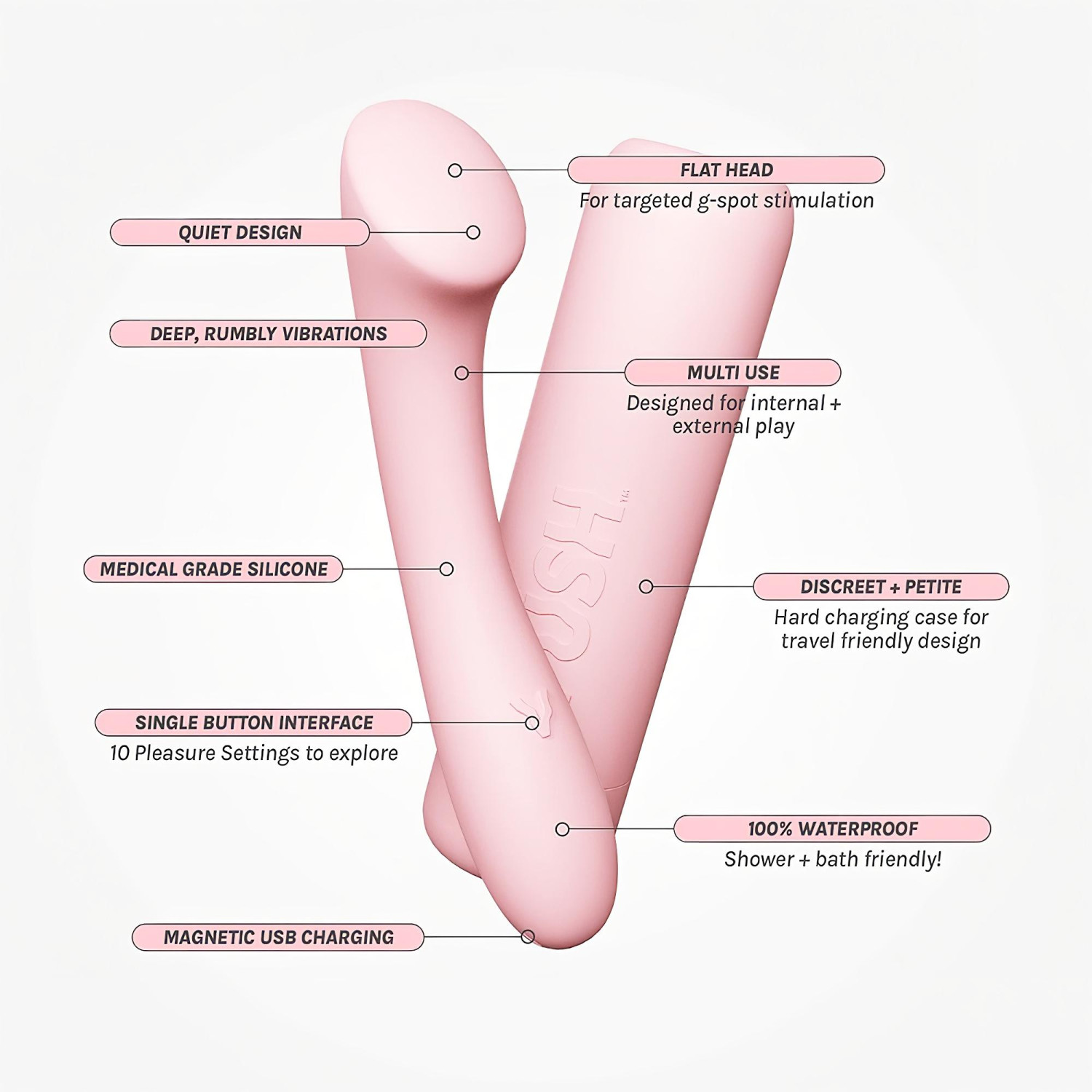 Vush Pop Shine - laddningsbar, vattentät G-punktvibrator (rosa)